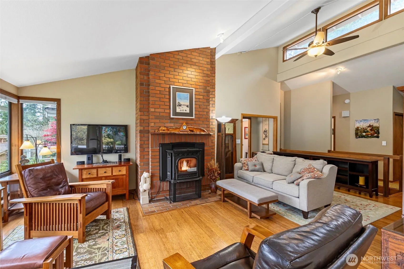 Interior FeaturesFireplace, Vaulted Ceiling(s), Walk-In Closet(s), Primary Bathroom, Insulated Windows, End Unit