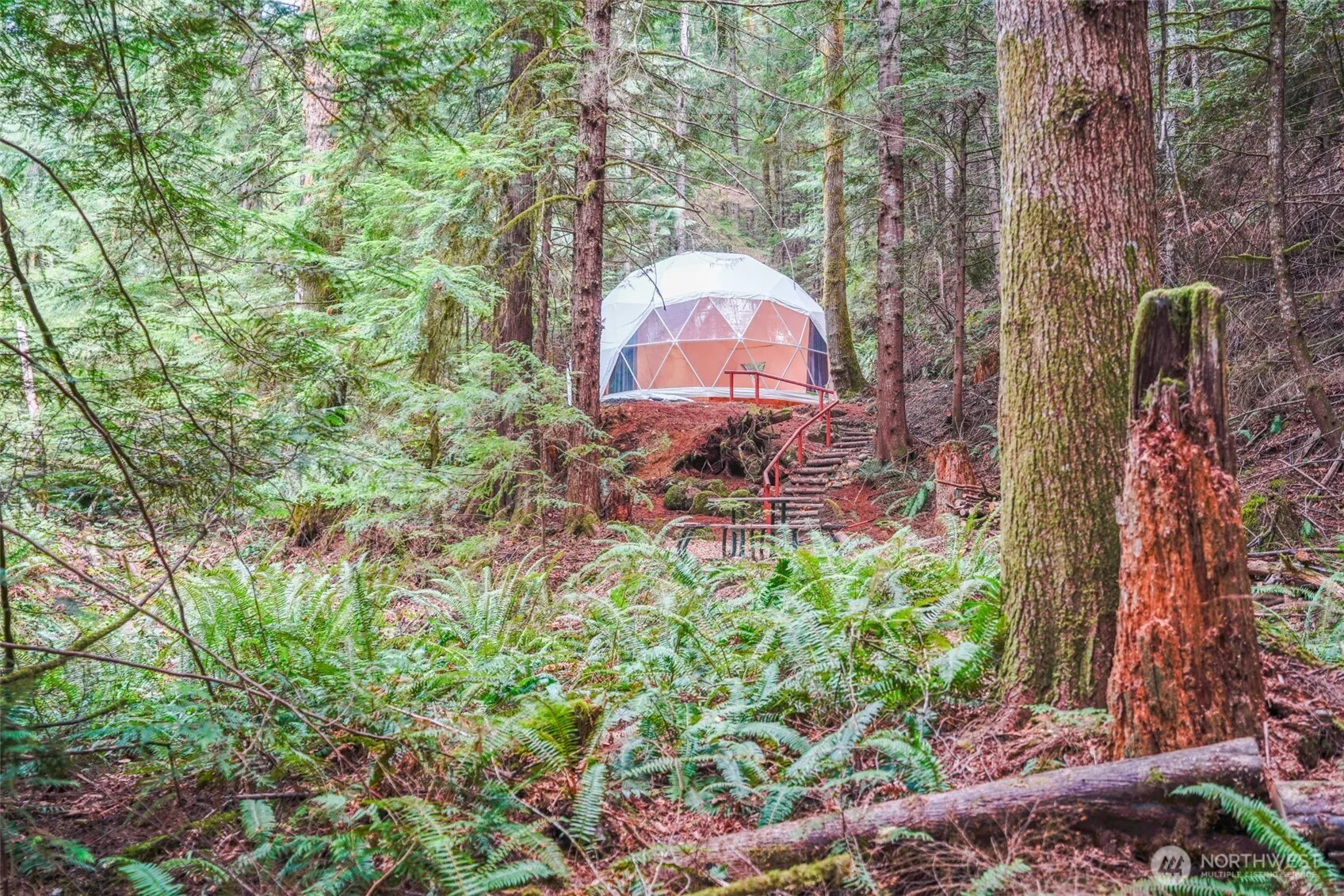 Directions: From Hwy 101 take Hwy 119 for 5.2 miles, through locked red gate on right. Go straight up on rough road, left onto N Dow Ridge Rd, property on your right at the dome.