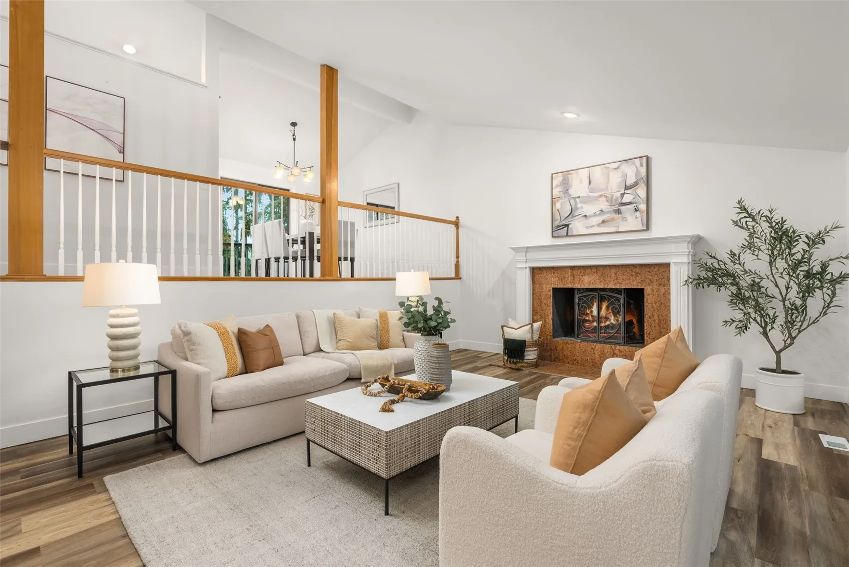 Bath Off Primary, Fireplace, Jetted Tub, Skylight(s), Vaulted Ceiling(s), Dining Room