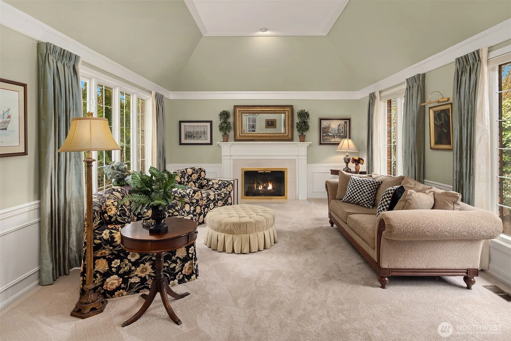 Bath Off Primary, Ceramic Tile, Double Pane/Storm Window, Fireplace, French Doors, Hardwood, Hot Tub/Spa, Security System, Skylight(s), Vaulted Ceiling(s), Walk-In Closet(s), Walk-In Pantry, Wall to Wall Carpet, Wired for Generator, Dining Room, Sprinkler System, Wine/Beverage Refrigerator, Ceiling Fan(s), Built-In Vacuum