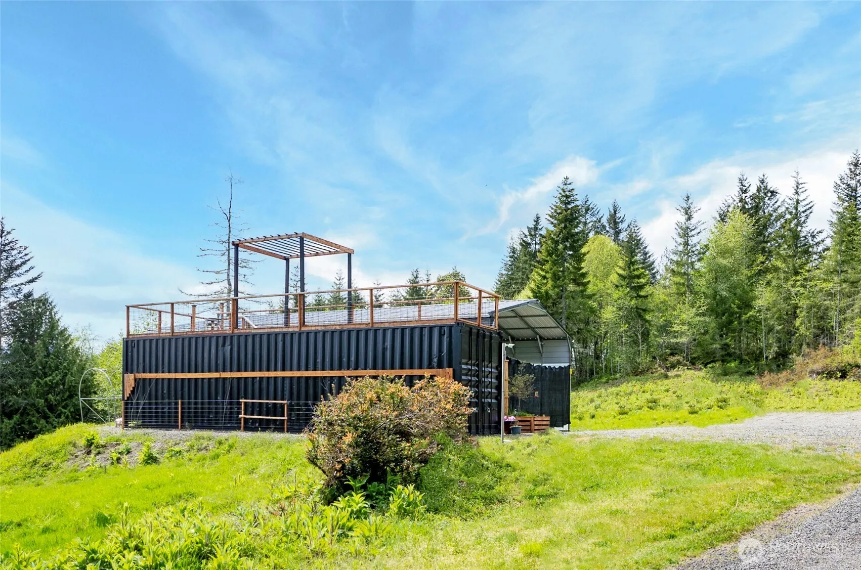 Directions: Off State Route 3 north of Shelton, Grapeview Loop Road to right on Thomas Road, left on April Avenue, come to Gate and get Code from Agent. Property corner lot on Right.